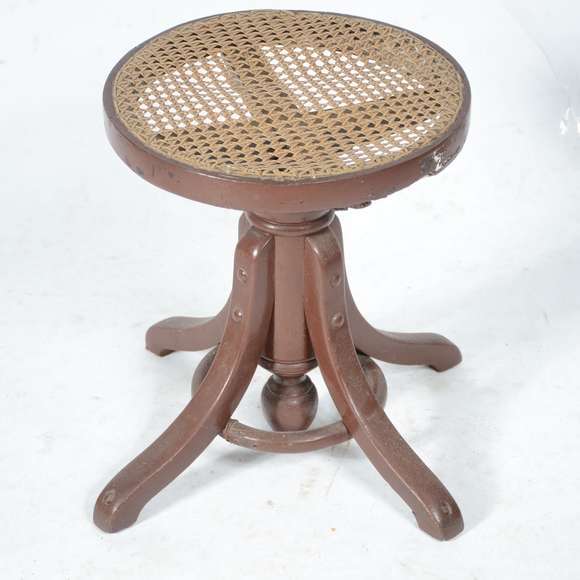 Banqueta para piano de madeira nobre, assento forrado com palhinha sintética (desgastes)