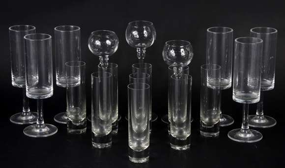 Lote com 16 copos de vidro/cristal em diversos modelos, sendo: 9 flutes, 3 taças para vinho tinto, 3 para vinho branc...