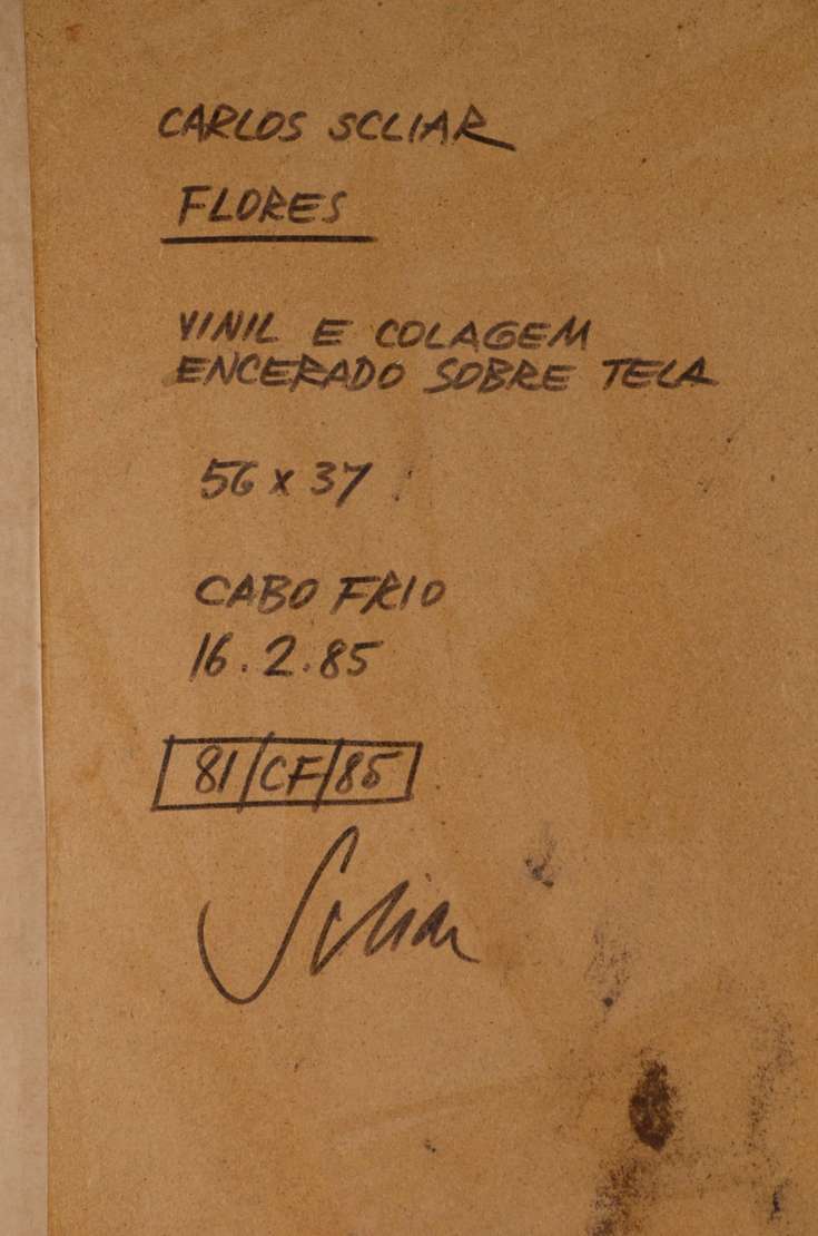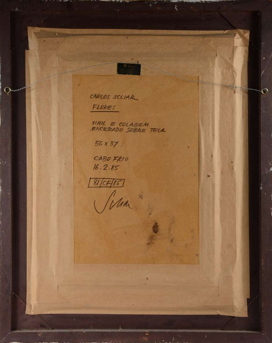 Vinil e colagem encerado sobre tela, localizado e datado Cabo Frio, 1985.