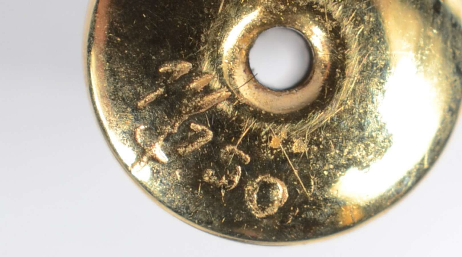 Prendedor de gravata de ouro 18 k. (Por medida de segurança a peça não se encontra em loja).