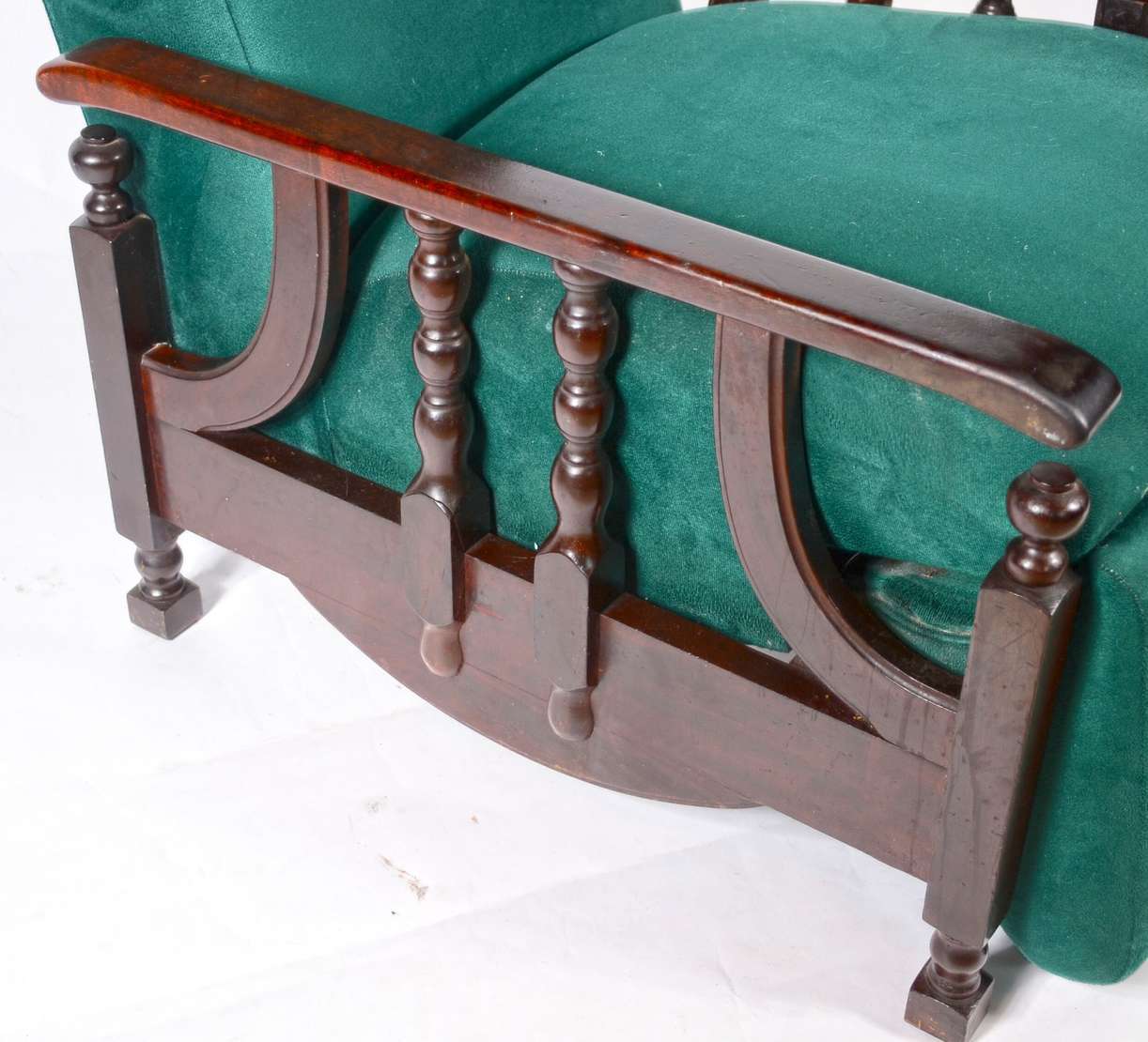 Banqueta de madeira nobre, saia recortada com entalhes, 4 pernas ligeiramente recurvas, assento estofado precisando f...