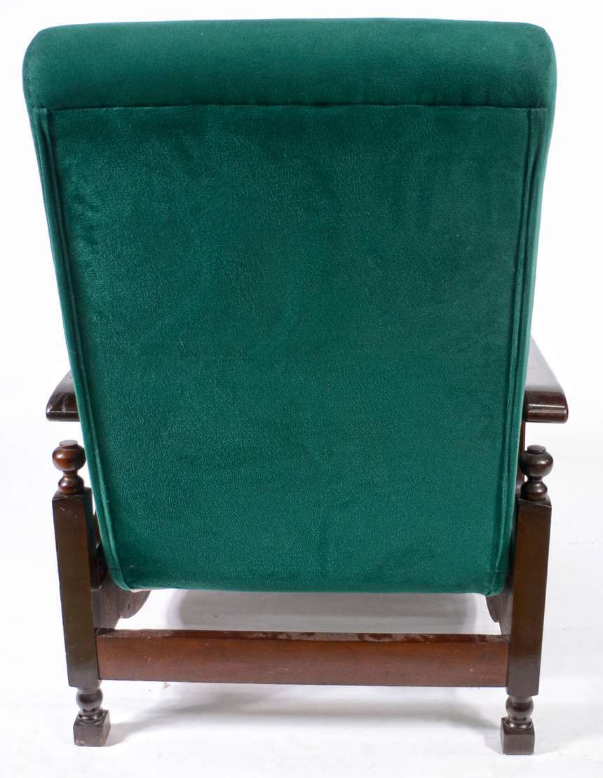 Cadeira de madeira nobre com estofamento de tecido bege.