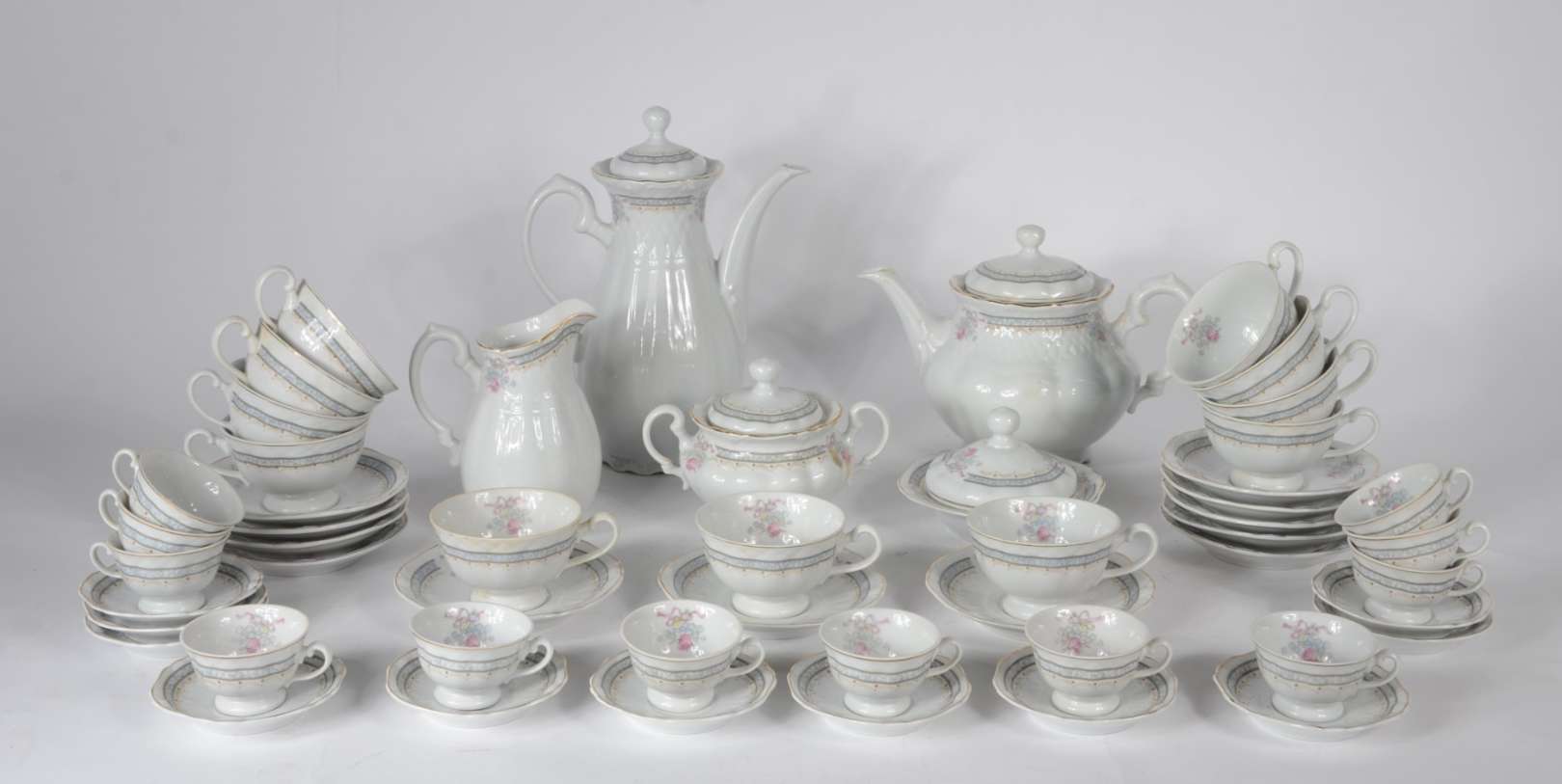 Serviço de cristal com ramos lapidados, composto de 11 taças para vinho tinto, 9 para vinho branco, 12 para licor e 9...
