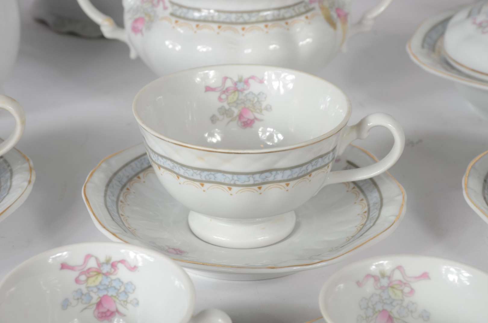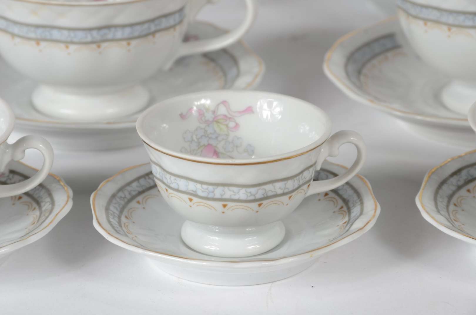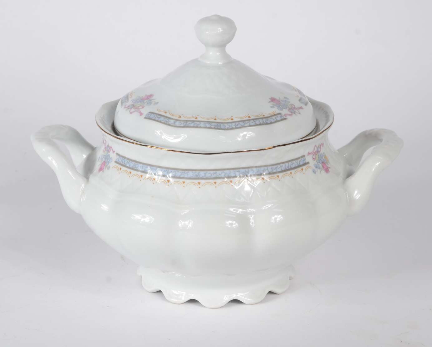 Poncheira com 11 canecas e concha de vidro com listras douradas