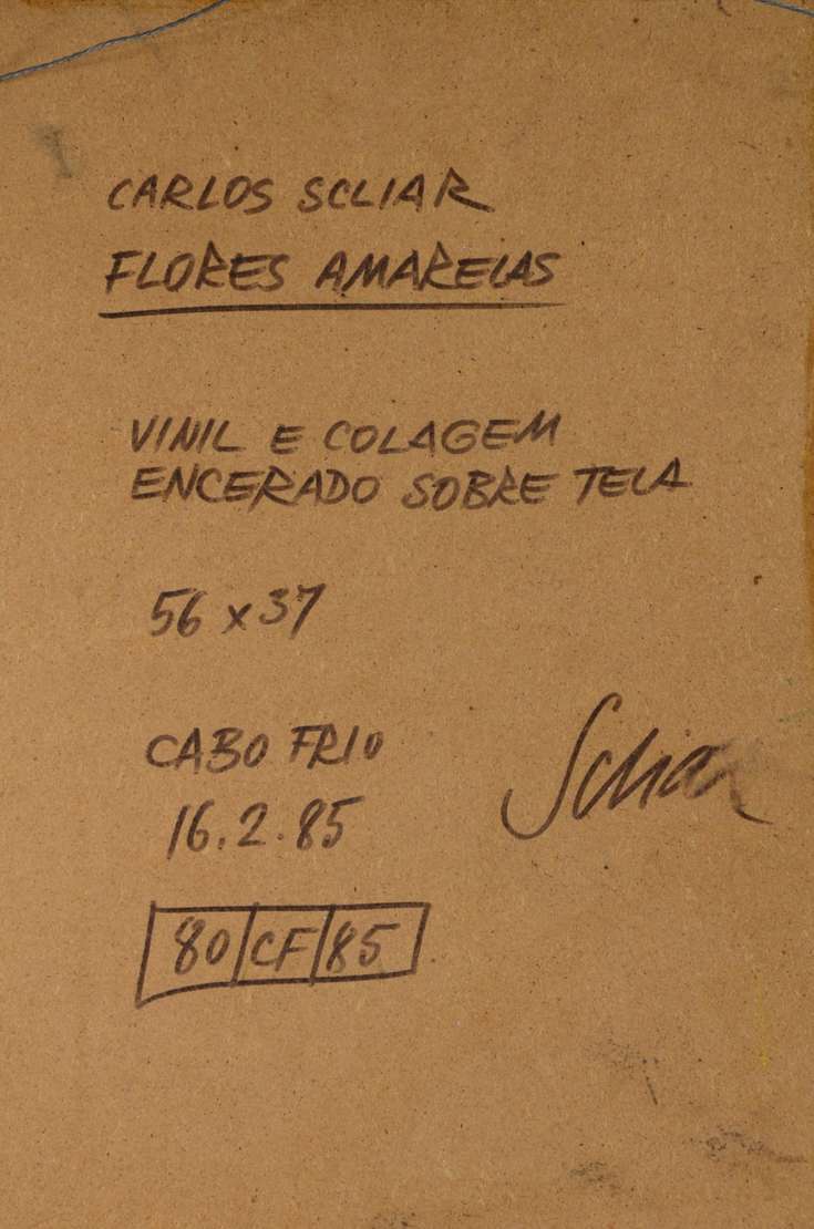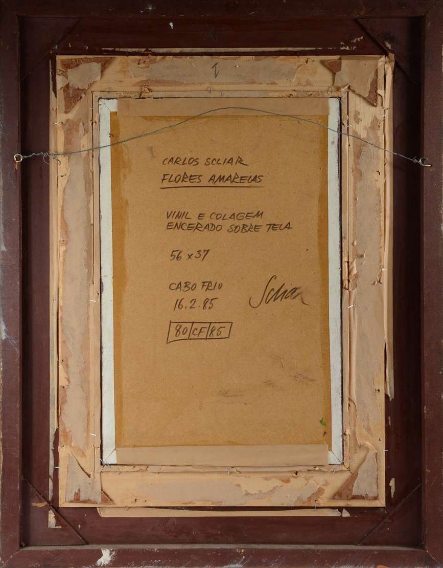 Vinil e colagem encerado sobre tela, localizado e datado Cabo Frio, 1985.