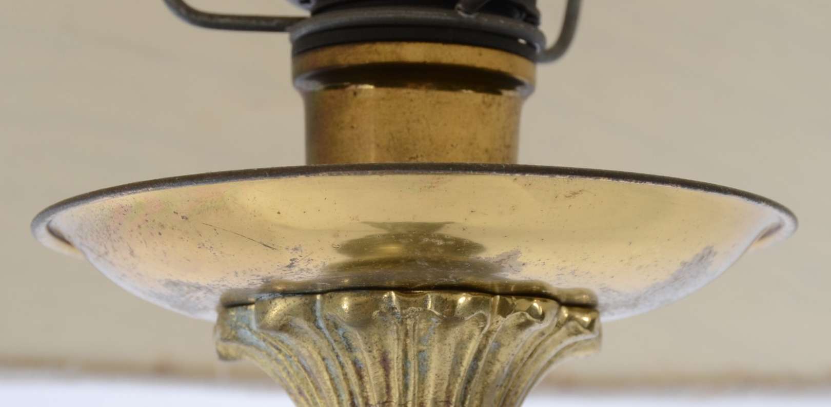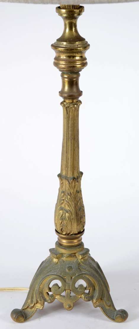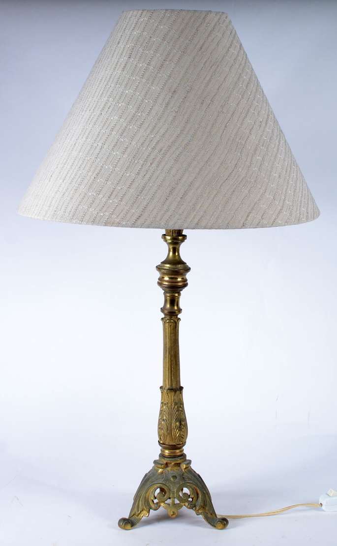 Abatjour de metal com cúpula de opalina branca.