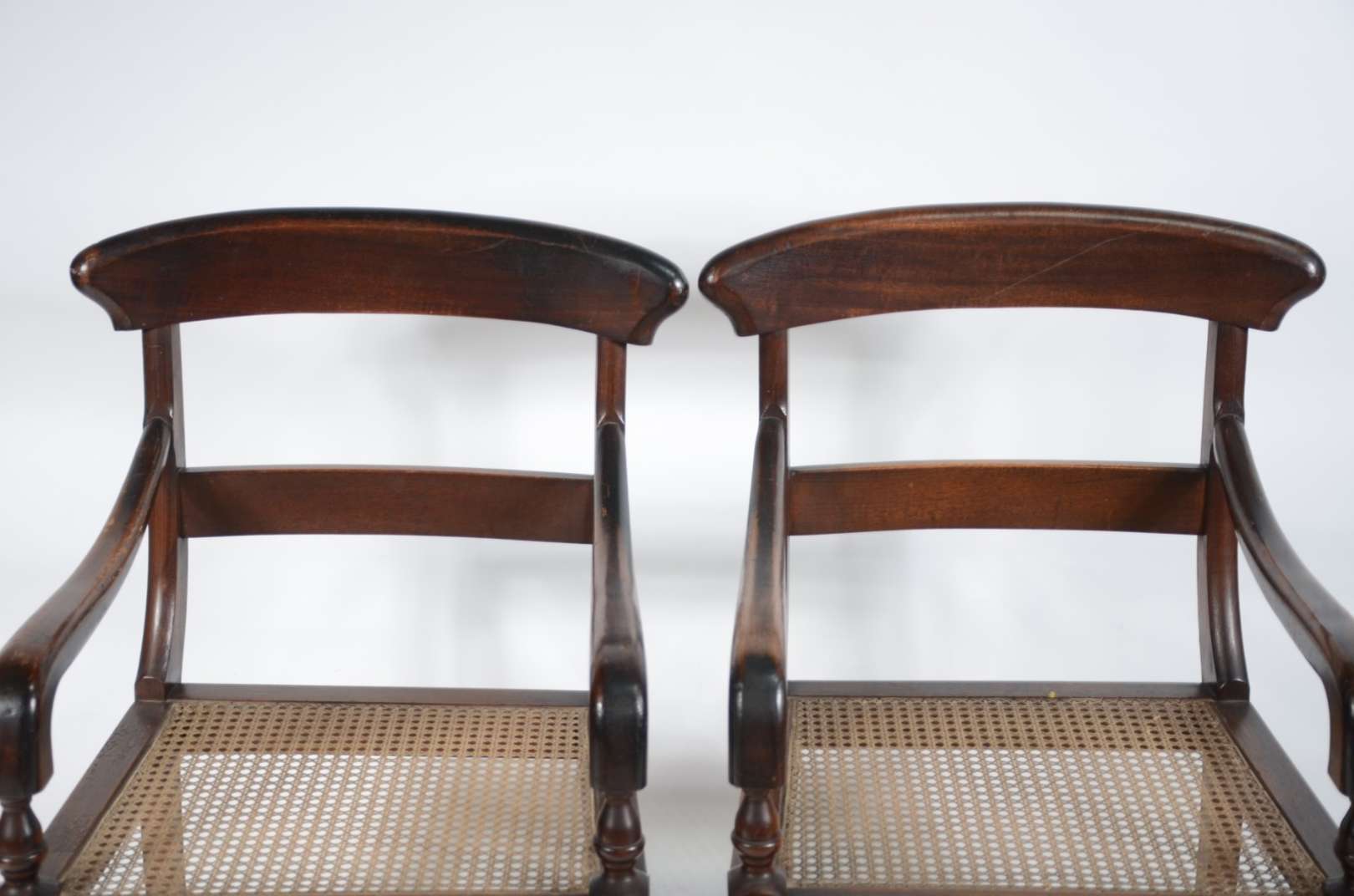 Par de poltronas de madeira com rattan, almofadas soltas e encostos em capitonê