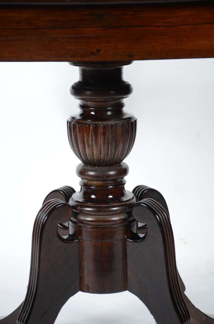 Aparador de madeira nobre, tampo dobrável apoio em coluna central torneada, terminando em quatro pernas.
