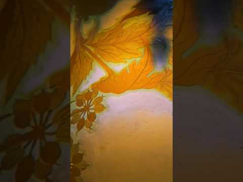 Luminária de metal dourado com cúpula de vidro trabalhado. Desgastes no metal.