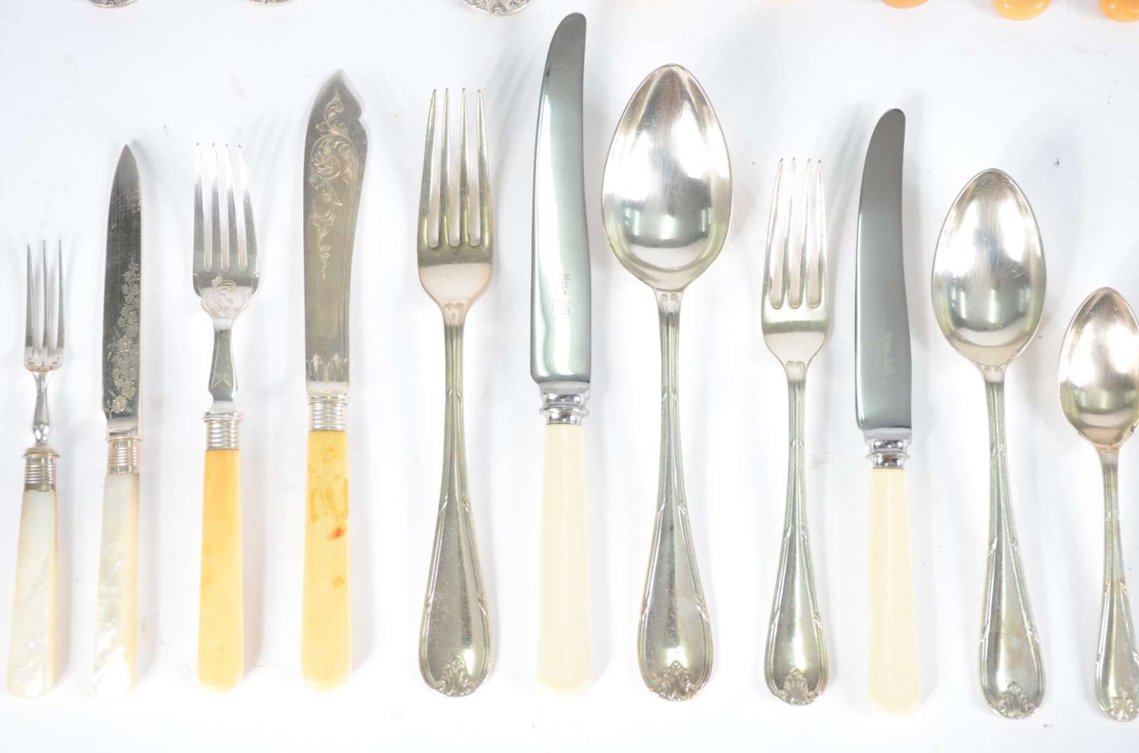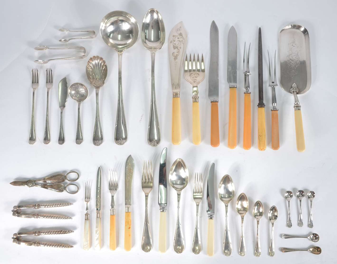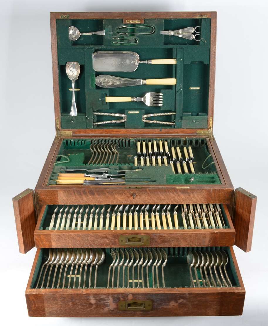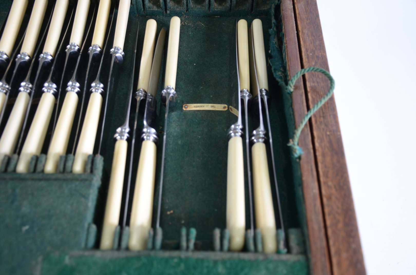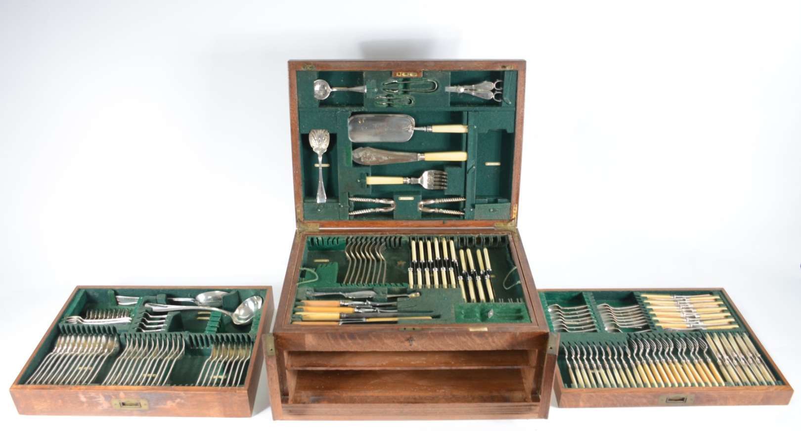 Faqueiro de prata, contraste 800 mls, composto de: 12 garfos, 12 colheres, 12 facas grandes; 12 garfos, 12 colheres, ...