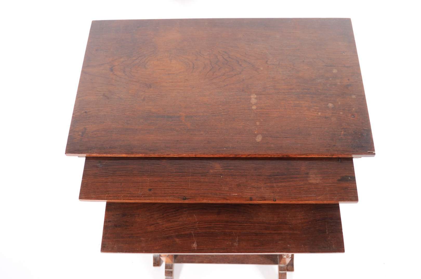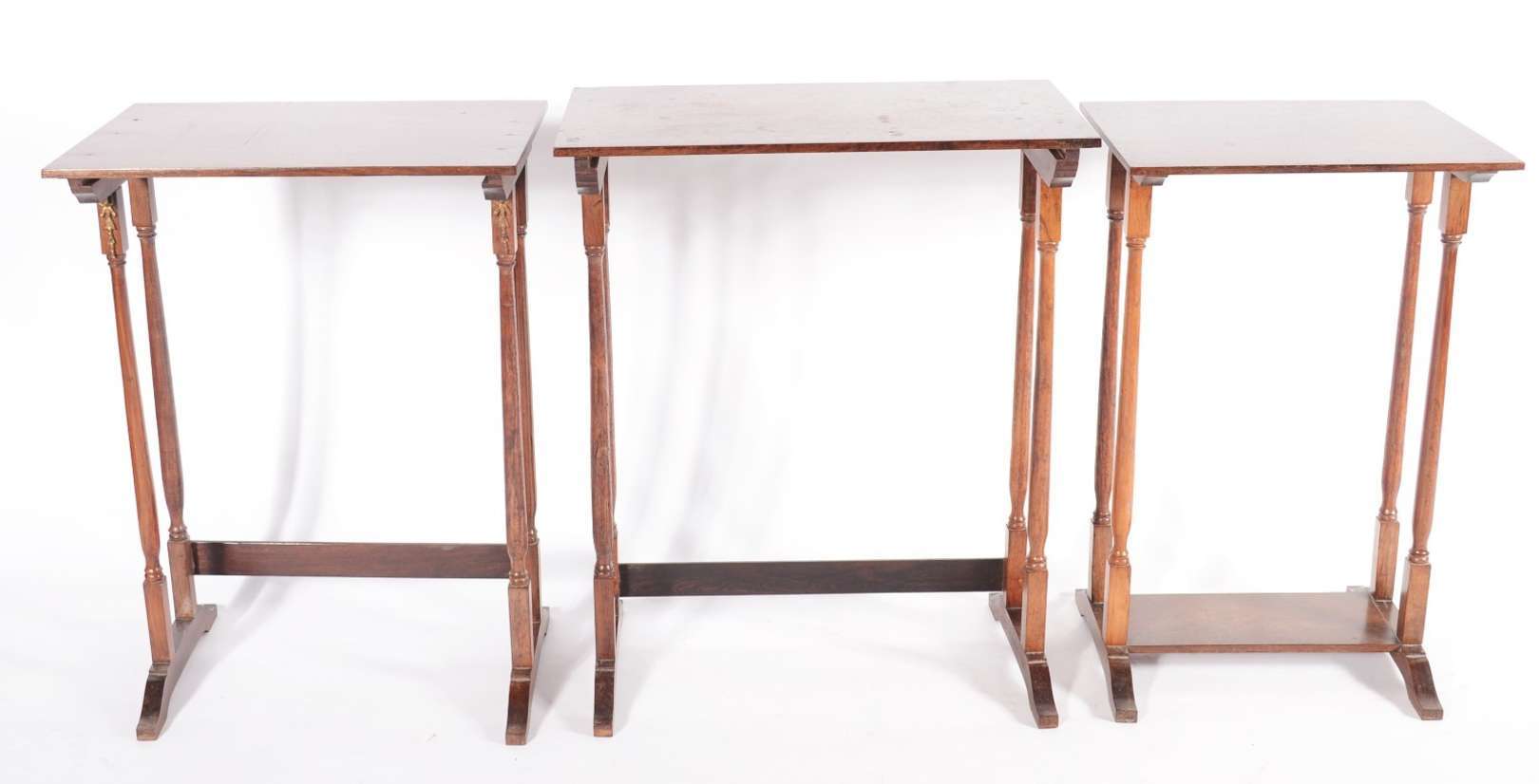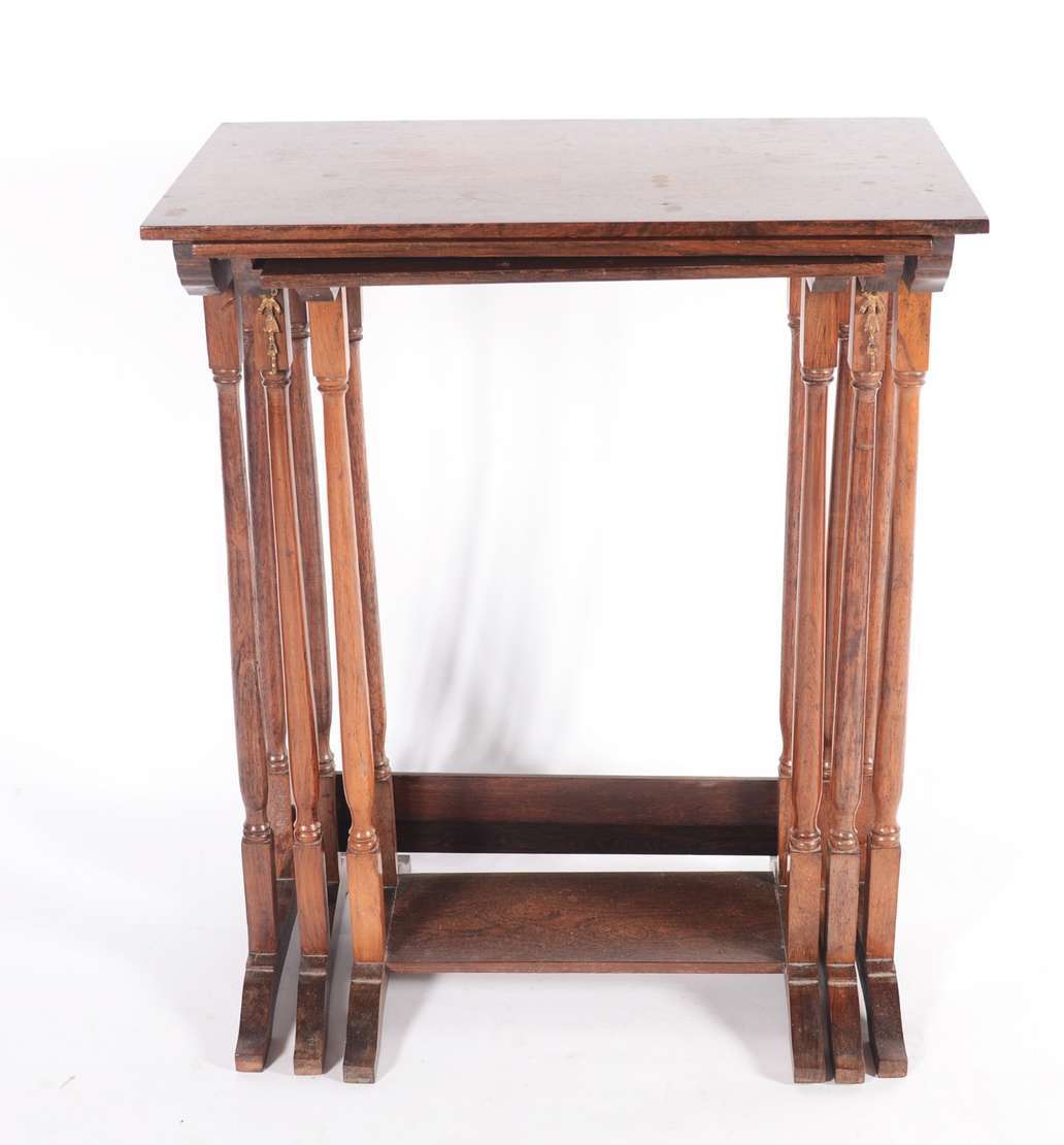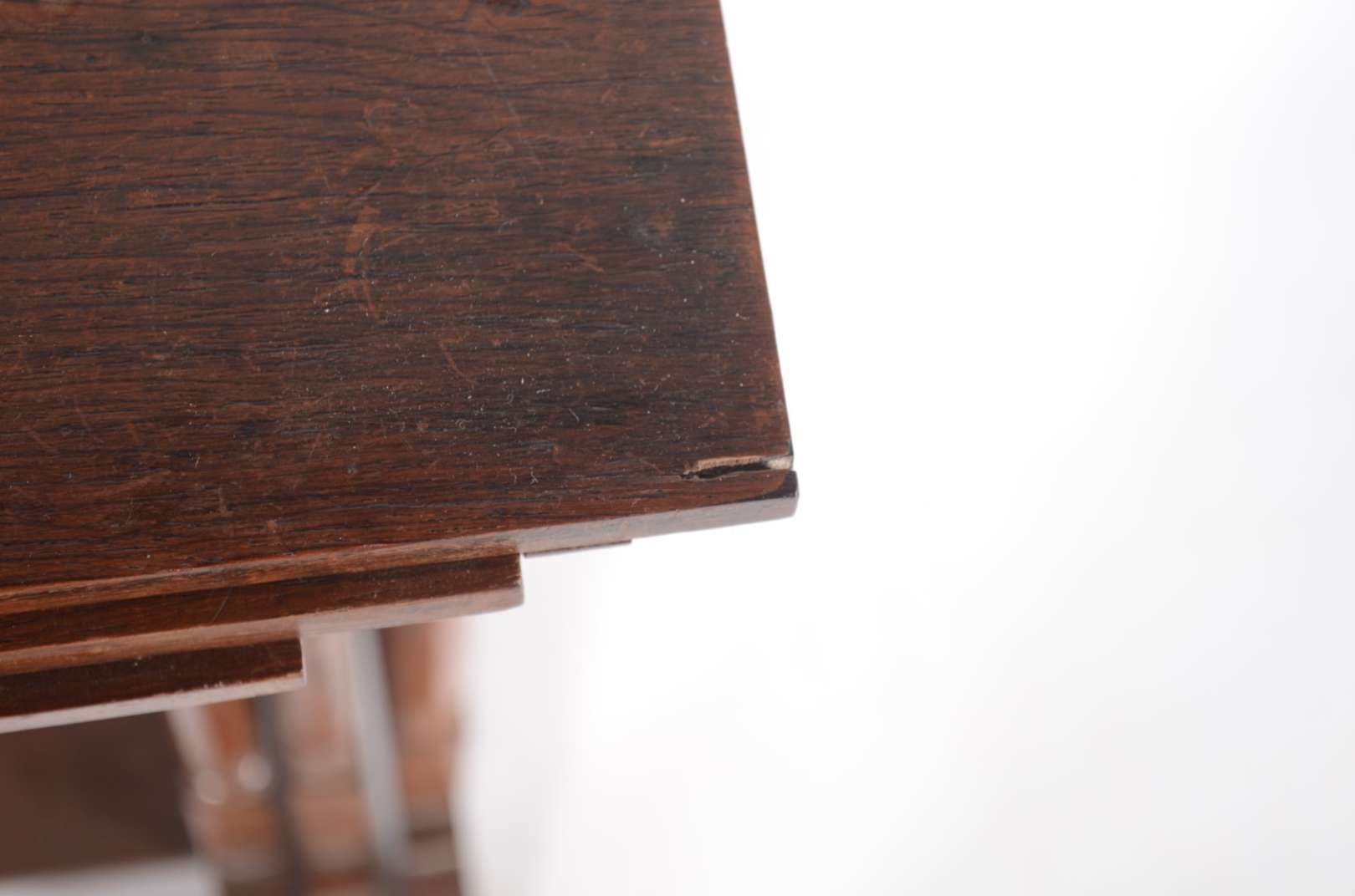 Mesa auxiliar de madeira nobre, tampo articulado apoiado em 4 colunas.