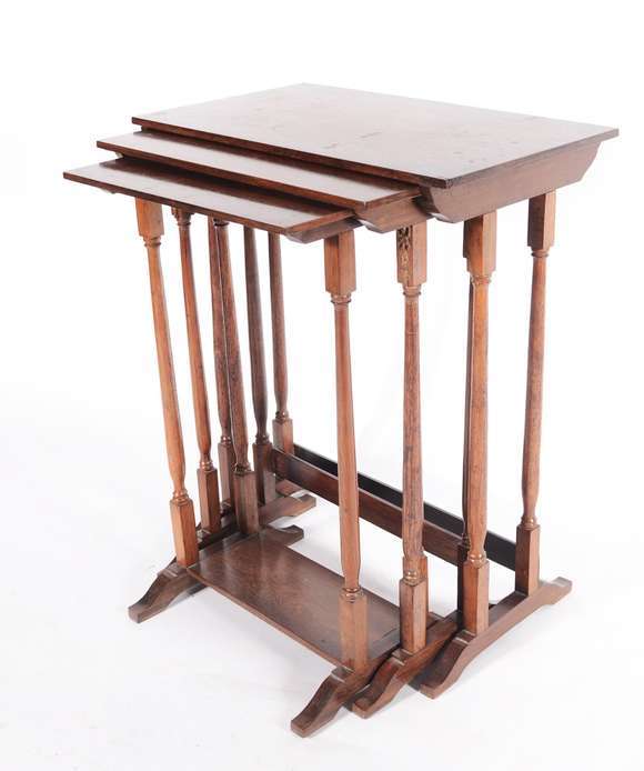 Mesa ninho de jacarandá com 3 peças, feitio retangular com pernas torneadas.