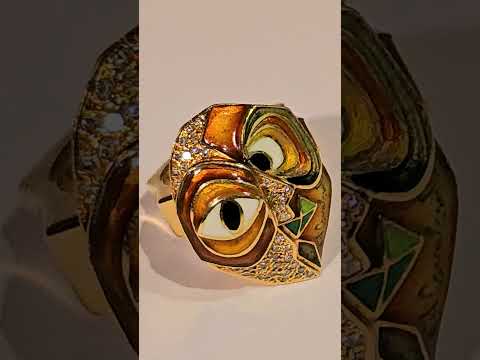 Anel de ouro 18 k., modelo feitio corações azuis esmaltados. Aro 17. (Por questão de segurança a peça não se encontra...