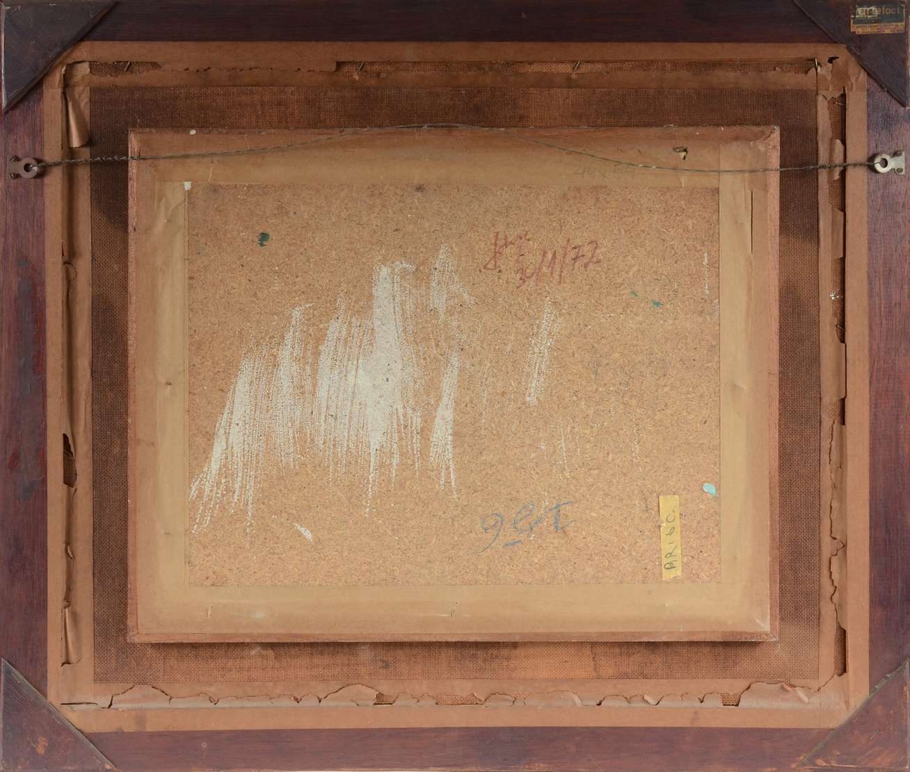 Óleo sobre tela colado em madeira. Apresenta rasgo.