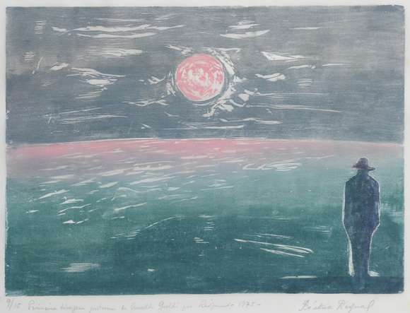 Xilogravura colorida impressa em papel japonês. Tiragem 9/15. Primeira tiragem póstuma por Reis Junior, 1971.