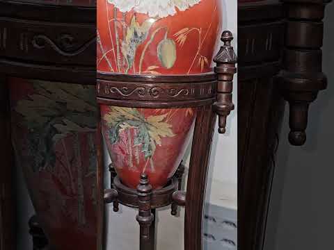 Ânfora de cerâmica com craquelê decorada com ânfora, flores e colunas em policromia, marca Collezione.