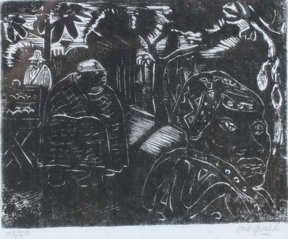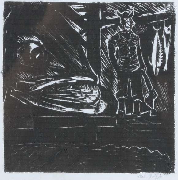 Xilogravura preto e branco impressa em papel japonês. Tiragem indeterminada. Outro exemplar reproduzindo na página 19...