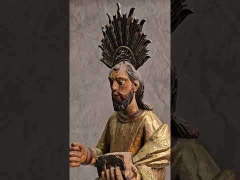 Antiga imagem de madeira sacra, resplendor de prata.