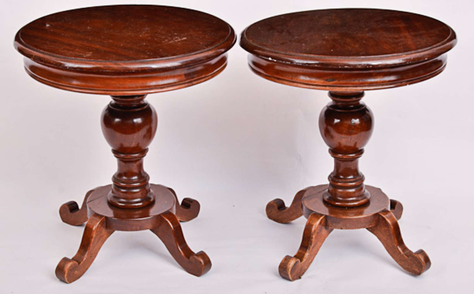 Par de mesas laterais de madeira nobre, estilo frances, trabalhos em marqueterie