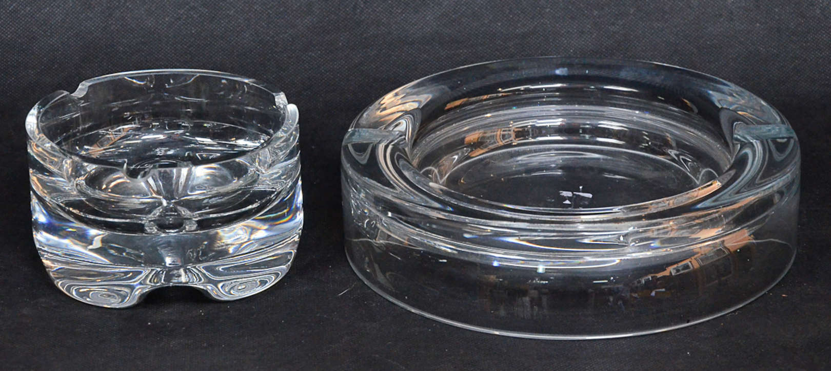 Duas peças de cristal sendo um prato para bolo e uma bomboniere.