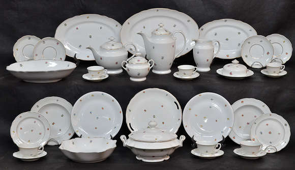 Aparelho de jantar, chá e café de porcelana Real, dec.floral, comp.de 12 pratos rasos, 12 fundos, 12 de sobremesa, so...