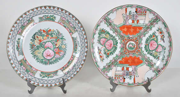 Dois pratos de porcelana chinesa, diam.31 cm.