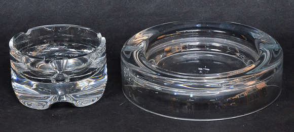 Dois cinzeiros de cristal polones, sendo um para charutos. Daim. 12 e 20 cm.