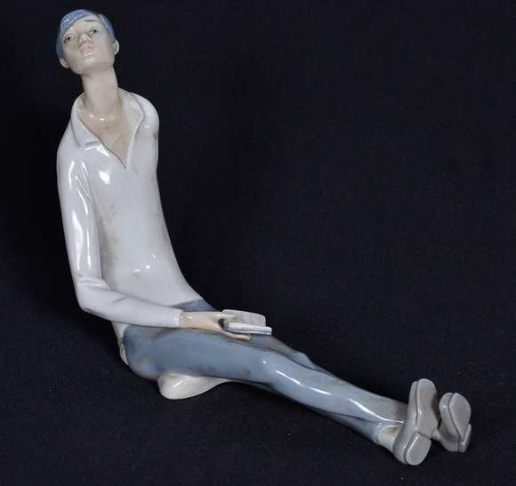 LLADRO - Estatueta de porcelana espanhola repres.rapaz com livro, alt. 20 cm.