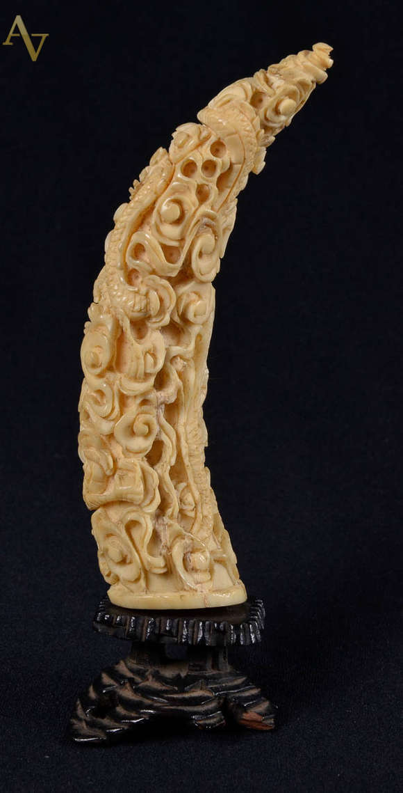 Pequena ponta de presa de marfim trabalhado; alt 12cm