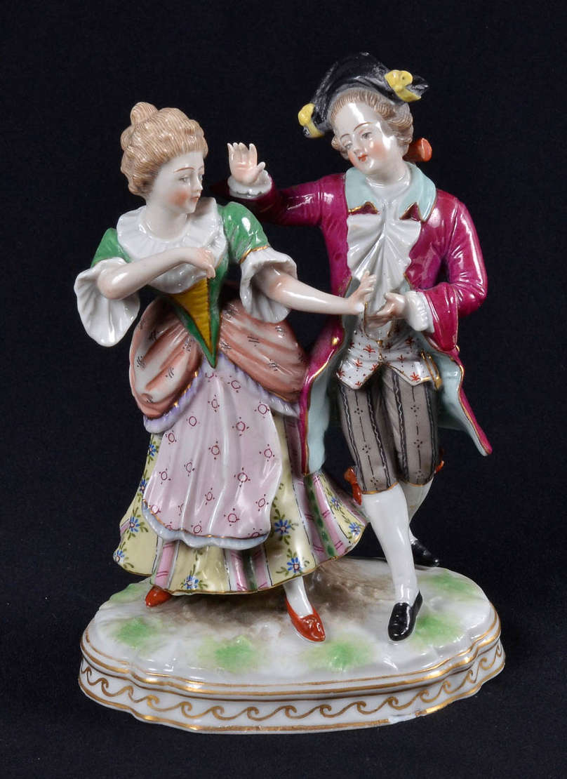 Casal dancando em porcelana europeia c/ um dedo quebrado. alt. 19cm