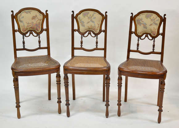 Tres cadeirinhas de palhinha ( palhinha no estado), encostos vazados, pes torneados.