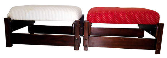 Par de banquetas de jacarandá, fabricação OCA, med. 54 x 60; alt.32 cm.