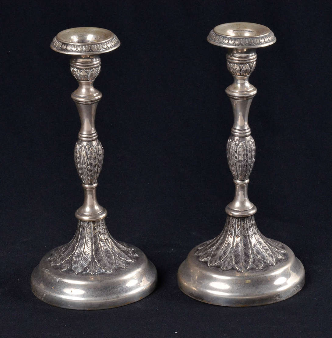 Par de candelabros para 3 velas cada de prata brasileira contrastada 800 mls e marca do prateiro. Base redonda com fr...
