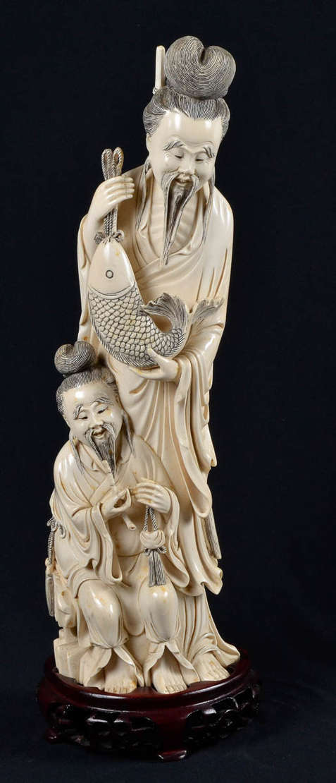 Netsuke de marfim repres.homem com peixe. Med. 5cm.