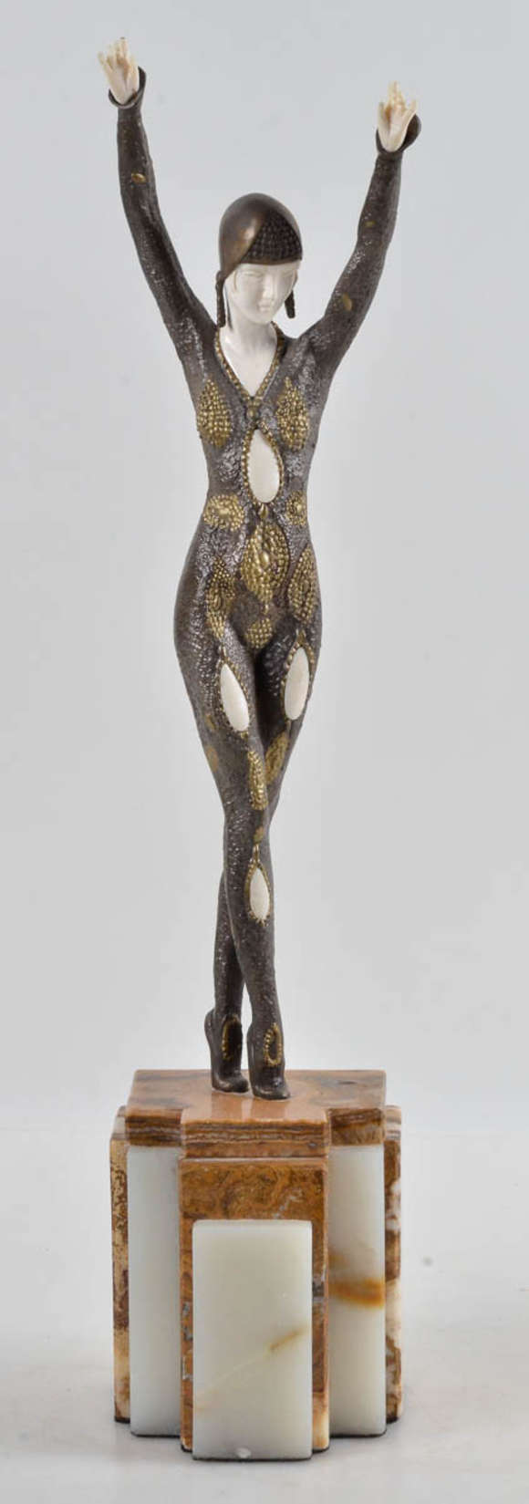 Estatueta de bronze e resina repres. bailarina, copia de Chiparus, alt. 59 cm.