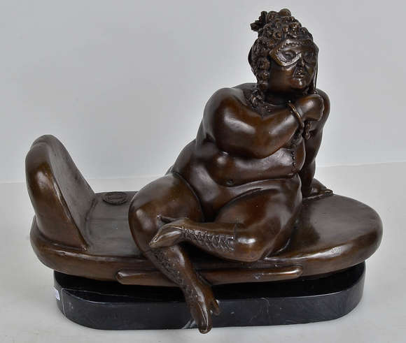 BOTTERO - Escultura de bronze repres. Mulher c/ mascara - com selo de fundicao EUROPEAN FINERY BRONZE. base 11x 5cm, ...