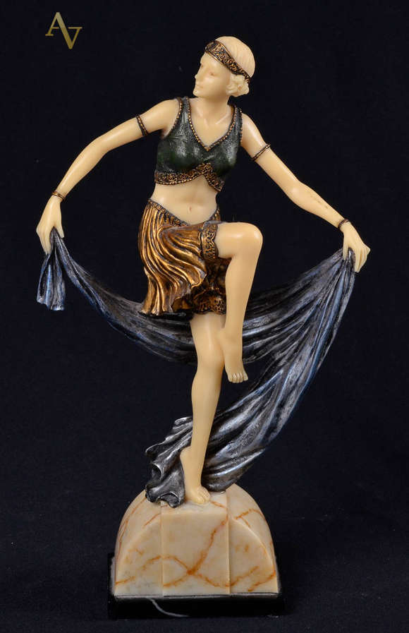Estatueta estilo Art Deco repres. Dançarina, base assinada Veronese, alt 23cm.