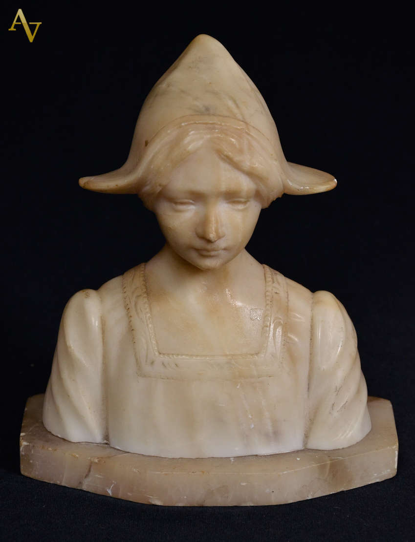 Escultura assinada, representando torso c/ base de mármore preto. Alt. total. 21 cm.