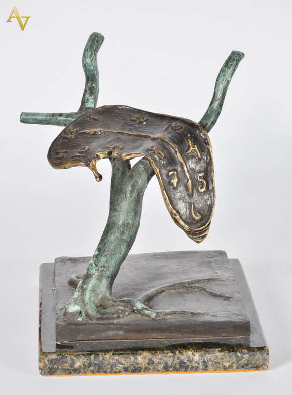 SALVADOR DALI - Escultura com relógio de bronze - múltiplo - com certificado. Tille. The Persistence of. memory - ...
