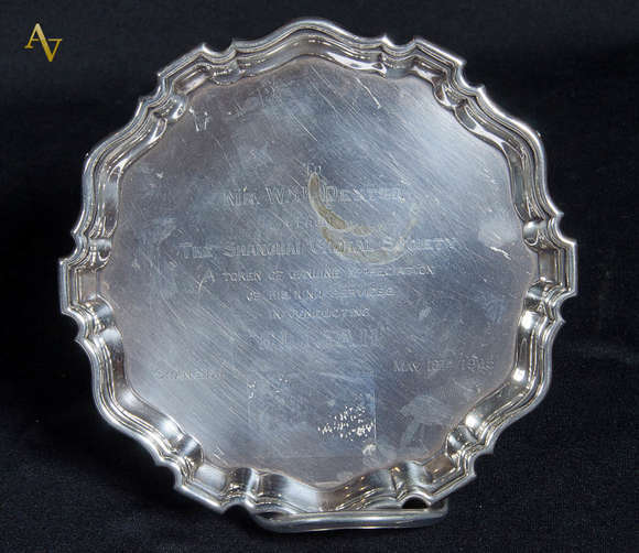 Salva comemorativa em prata inglesa STERLING (925mls) com três pés. Marcas da cidade de BIRMINGHAM, e do prateiro WIL...