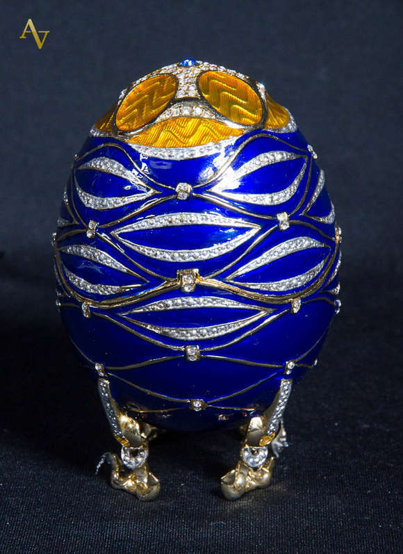 Ovo no estilo Fabergé c/ navio no interior da peça. Alt.10 cm.